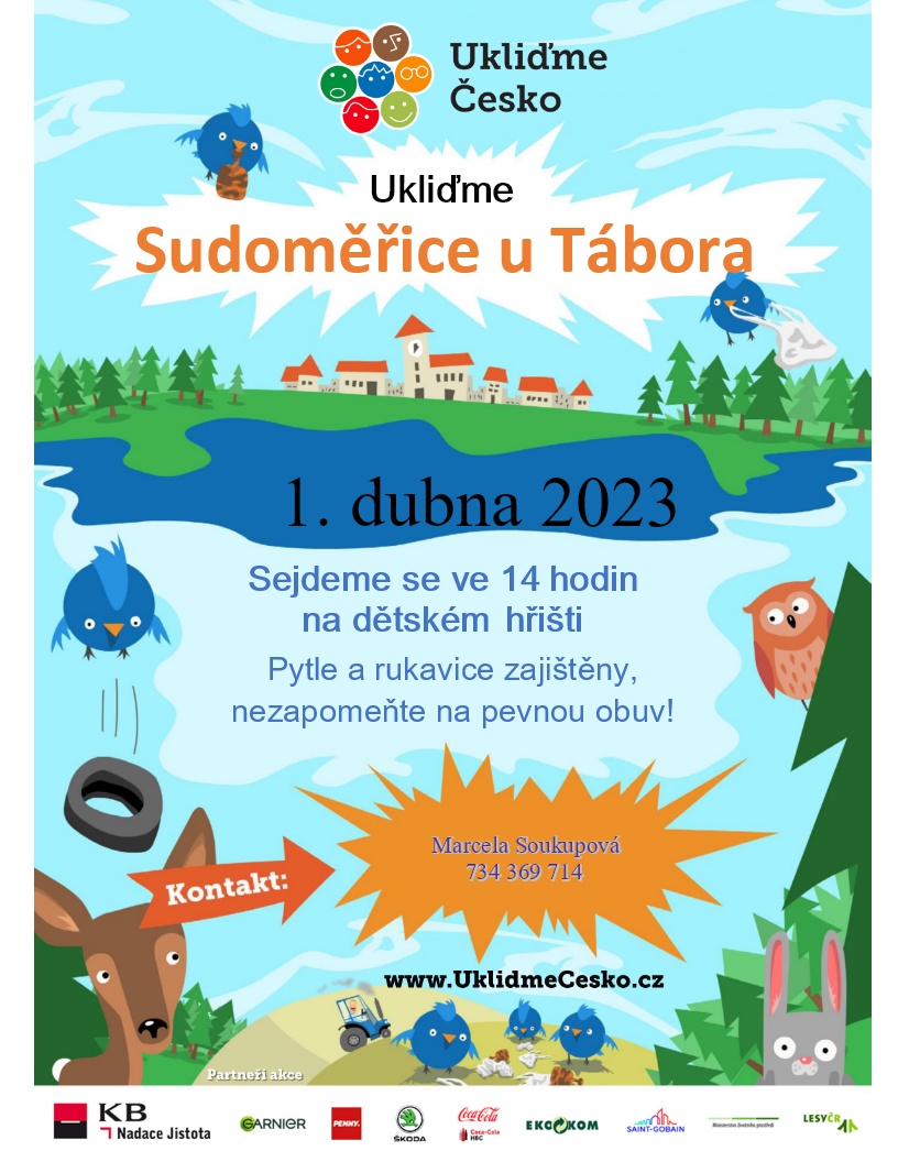 Obec Sudoměřice u Tábora zve všechny na společný úklid Sudoměřic.